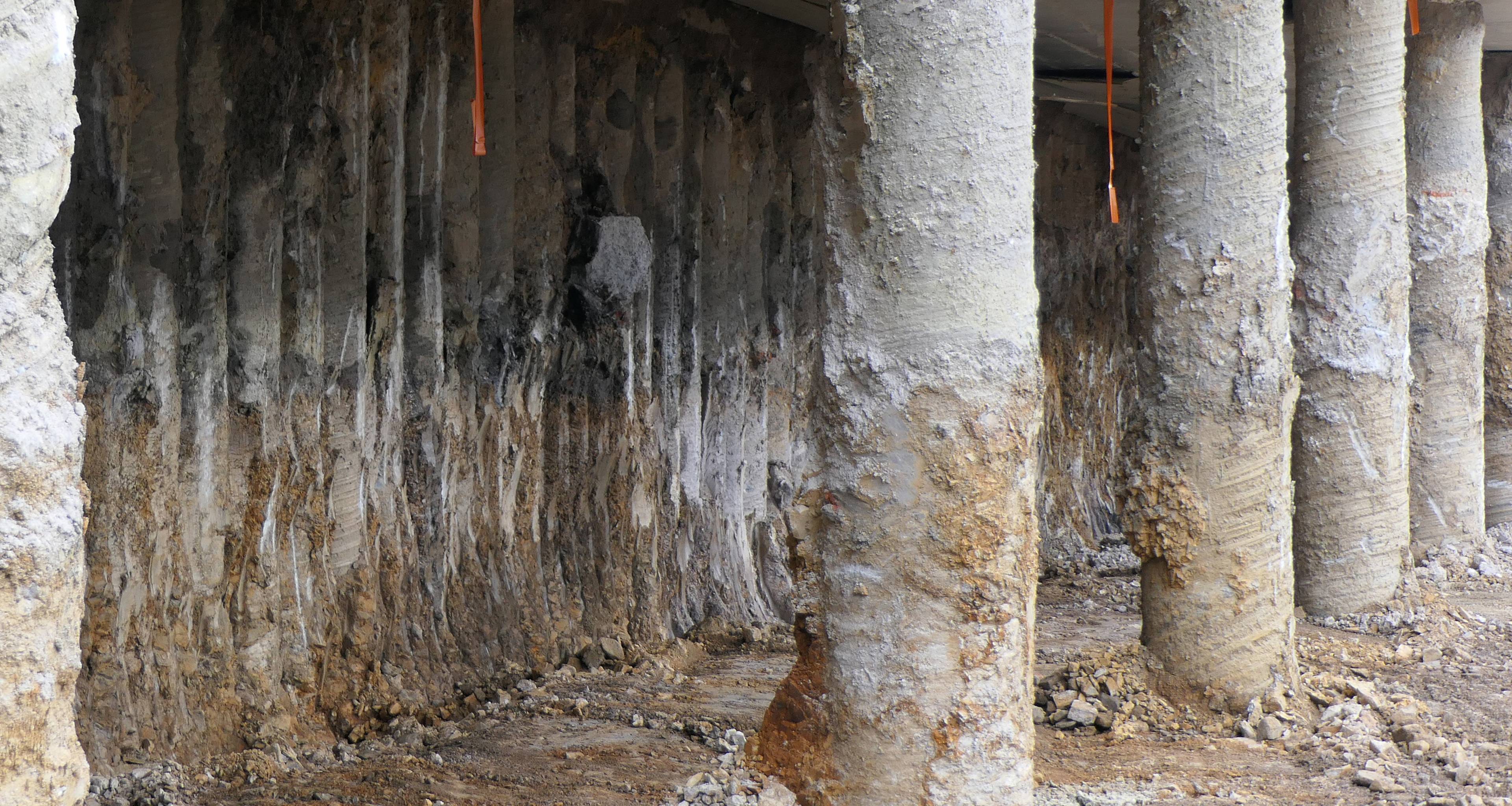 The soil at this place is made of schist containing very hard quartz, among other materials. Boring large diameter piles has not been easy on the whole site, and for some, we even had to use a micro piles rig in order to deconstruct the rock and permit to ends up the drilling.